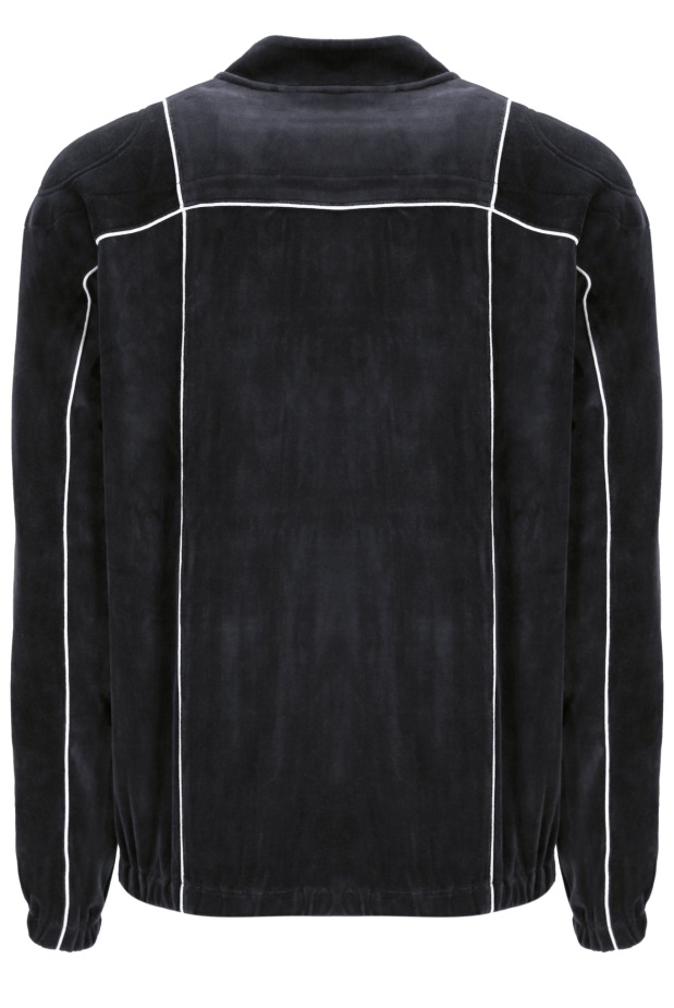 nyní Vybavený Motorkářským Límcem Se Zapínáním Na Knoflíky, Nově Aktualizovaný černý Velurový Top S Kontrastním Bílým Lemováním Se Dvěma Zasouvacími Kapsami A žebrované Manžety A Pas Pro Větší Pohodlí. Kompletní S Naším Logem Fila F-box Na Levé Paži Pro Prémiový Vzhled.